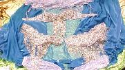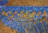 The skirt has three layers, each layer is scallopped and decorated with beads, seqins and paillettes. Due to