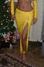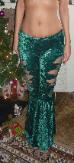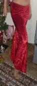 Skirt: trumpet skirt with slit over left leg. 36" in length, upper hip will fit 34", lower hip about 42"