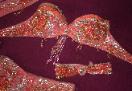 Both bra and belt have beautiful beads that will glow in the sunlight or under stage light. None of the