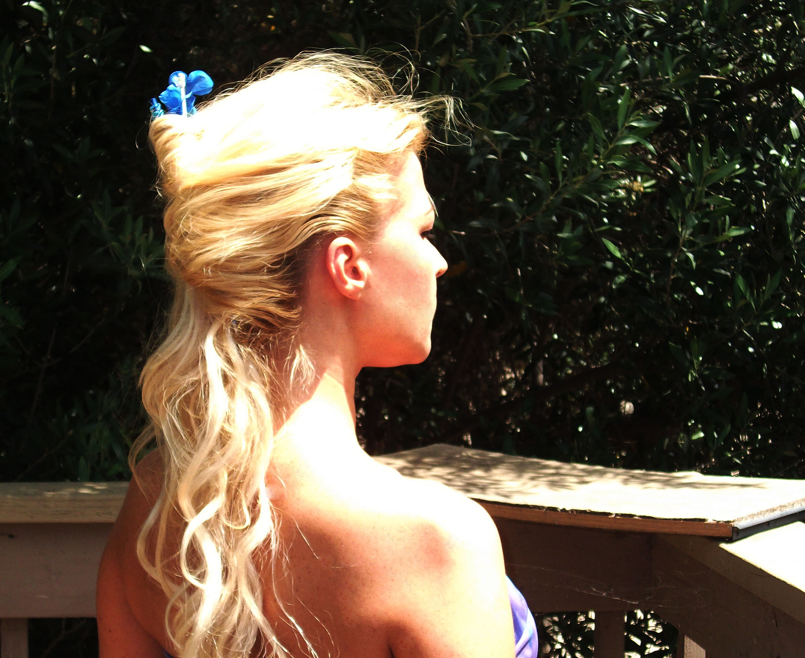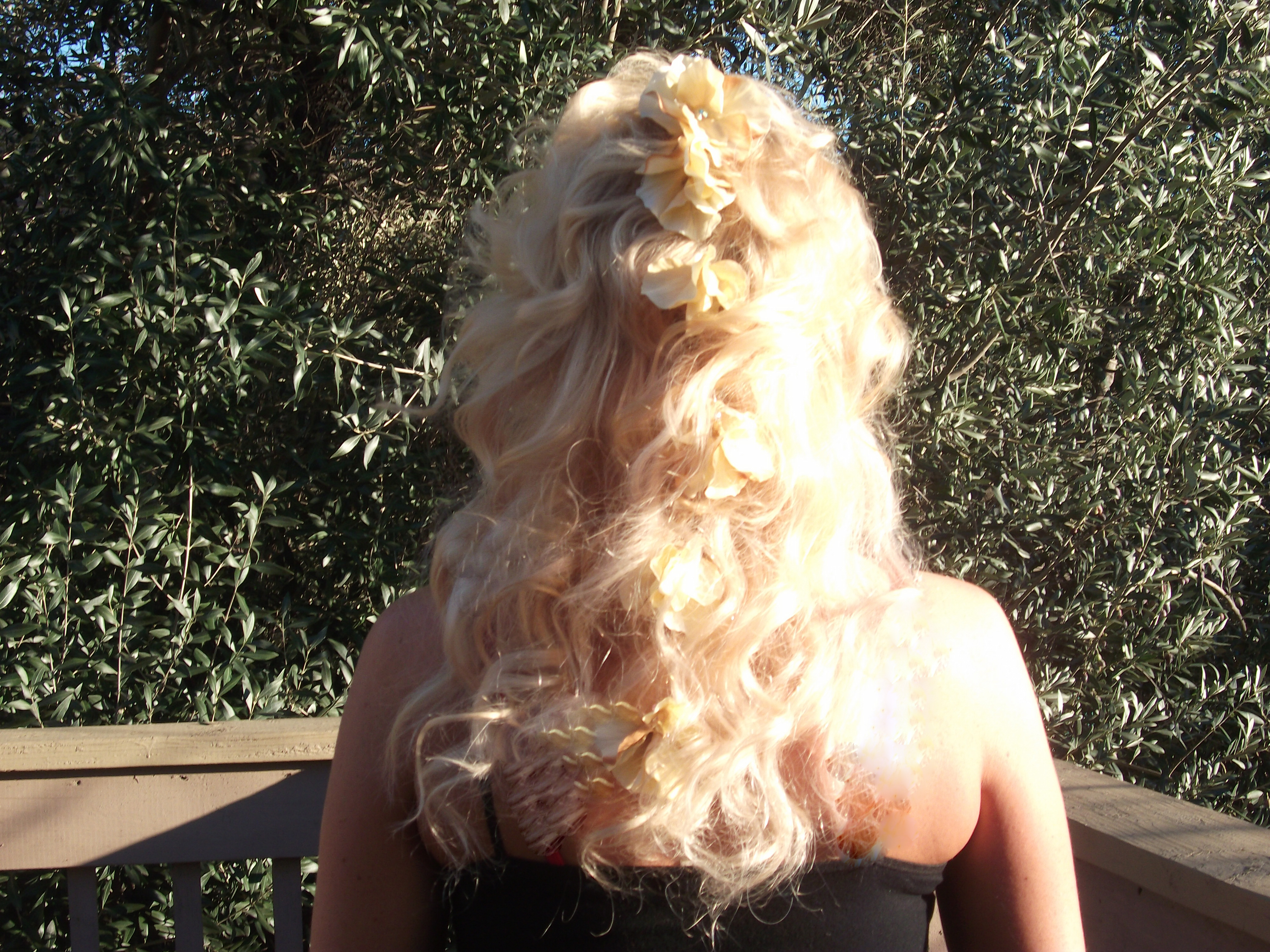 Tease your hair up, and keep it together with a couple of flowers to complement your sexy and playful mood :)