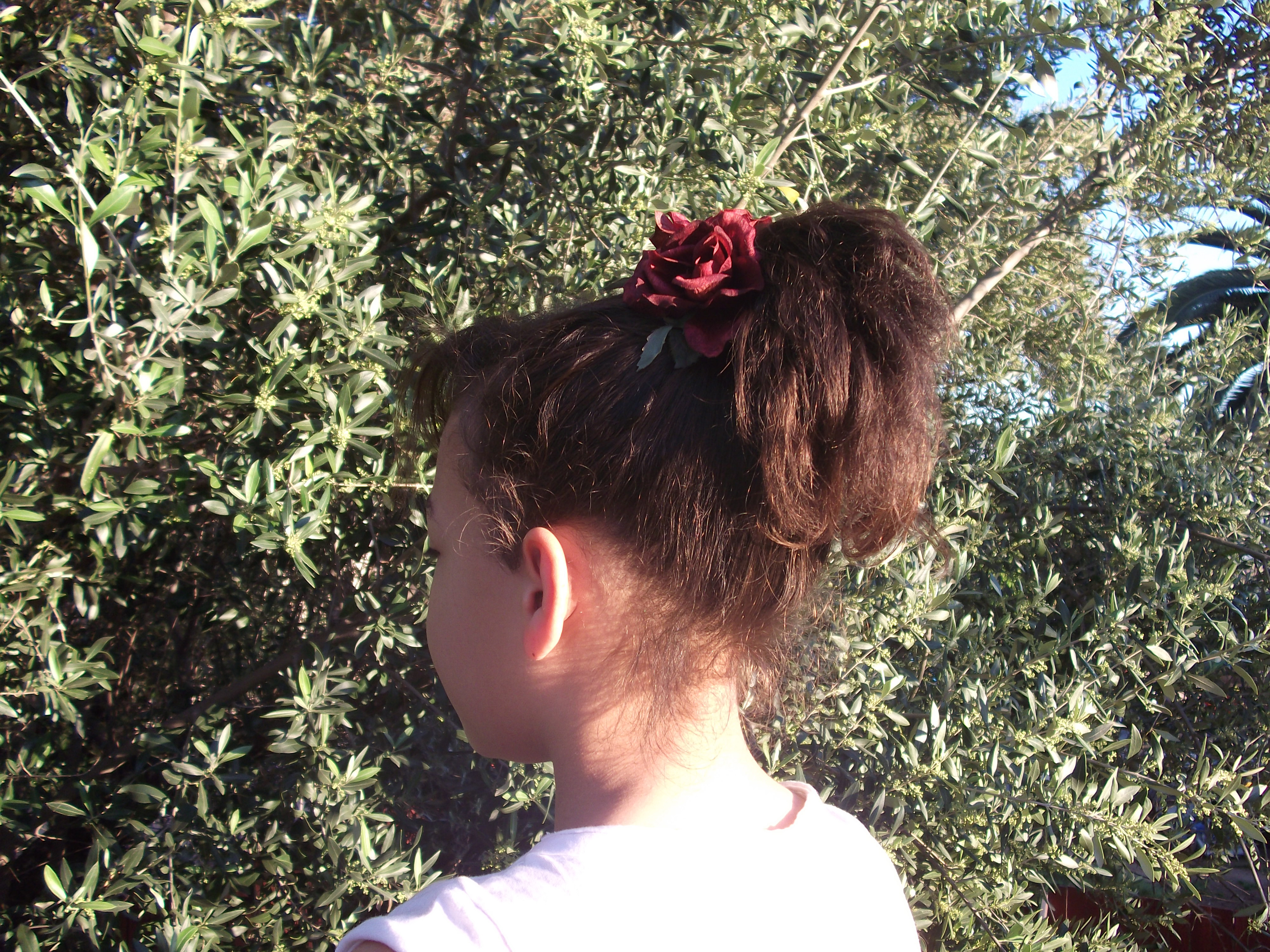 - attach 2 or 3 flowers at the base of the bun or pony tail for a more elegant look